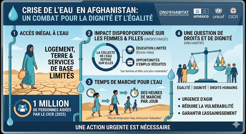 - Impact social : Le rapport confirme que les femmes et les enfants sont les premiers touchés, passant des heures chaque jour à transporter de l’eau au détriment de l’école ou d’activités génératrices de revenus.