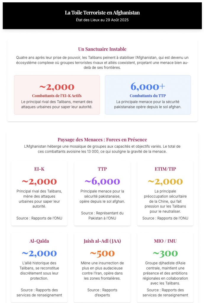 Ce triptyque définit la menace actuelle. Ce n’est pas un problème « afghan » ; c’est un problème systémique qui dépasse l’Afghanistan, qui découle de l’inaction internationale, du désengagement occidental, des rivalités régionales et de la déstructuration totale du pays depuis août 2021.