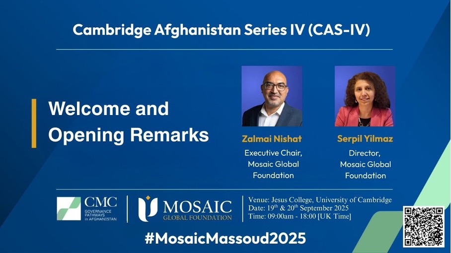 La Conférence de Cambridge Massoud s’ouvre avec des appels puissants à la liberté, à la justice et à la connexion humaine JOUR 1 – 19 septembre 2025 La Cambridge Massoud Conference (CMC), également connue sous le nom de Cambridge Afghanistan Series (CAS-IV), s’est ouverte aujourd’hui au Jesus College de l’Université[…]