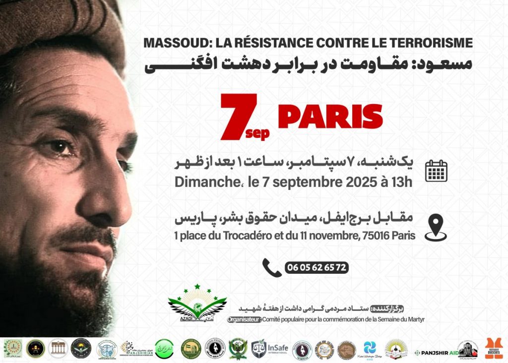 Nous commémorons les martyrs et l’assassinat du Commandant Ahmad Shah Massoud, le héros national d’Afghanistan / Khorasan, à Paris.